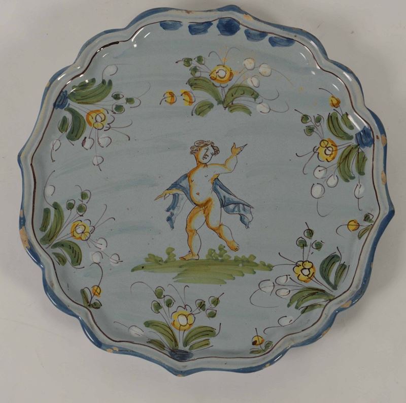Maiolica. Marca: assente. Diametro massimo cm 27,5. Conservazione: insignificanti sbeccature al bordo