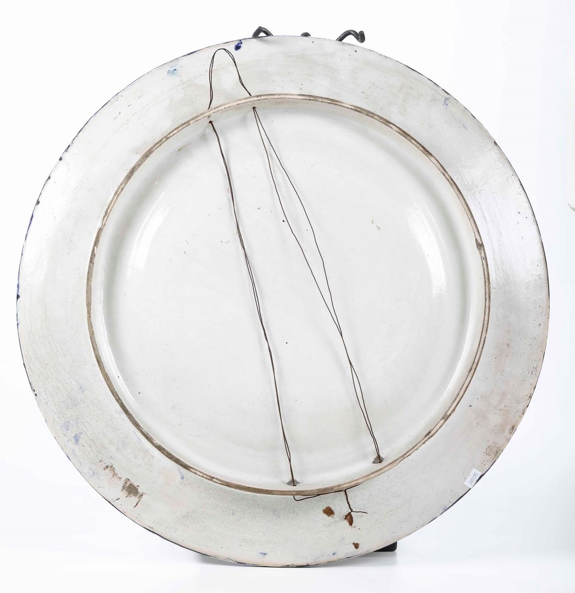 Maiolica policroma decorata a gran fuoco con scene mitologiche. Marca assente. Diametro cm 60,5. Conservazione: qualche sbeccatura al bordo