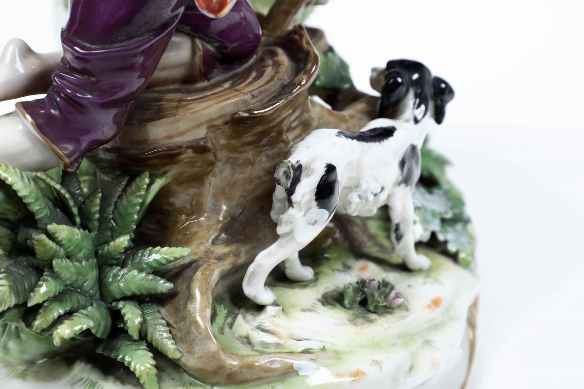 Porcellana policroma. Marca: "N" con corona in blu. Altezza cm 25,3. Conservazione: piccole rotture alla vegetazione