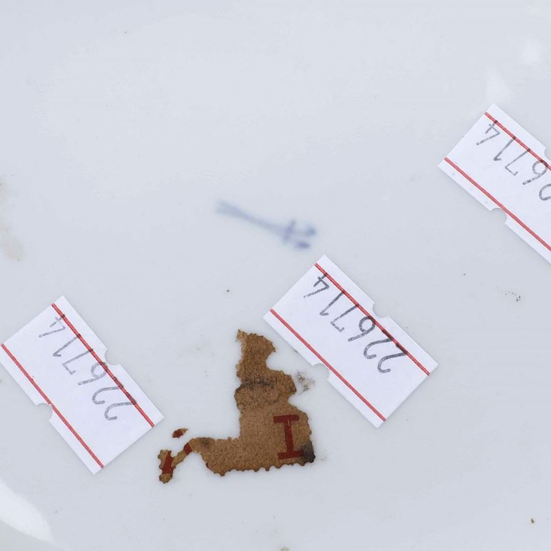 Porcellana. Marca: pseudo marca di Meissen. Dimensioni: altezza cm 8; cm 18x13. Conservazione: leggere usure