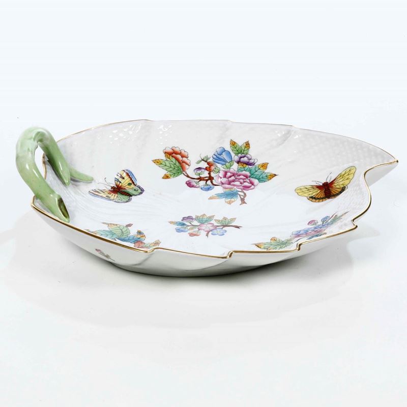 Un vassoietto a forma di foglia, modello Regina Vittoria Ungheria, Manifattura Herend, 1960 - 1970 circa