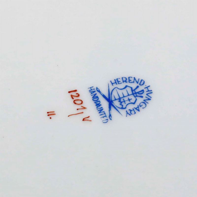 Porcellana. Marca: simbolo grafico della manifattura con "Herend Hungary Handpainted". Dimensioni cm 24x20. Conservazione: ottima