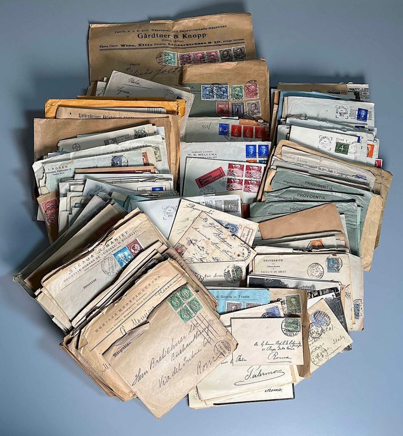 Circa 380 buste e qualche cartolina di Paesi Europei provenienti da archivio. Notate buone affrancature, raccomandate e rispedizioni. Qualità mista. In maggioranza materiale del periodo 1880/1920. Merita attento esame. Molto interessante.