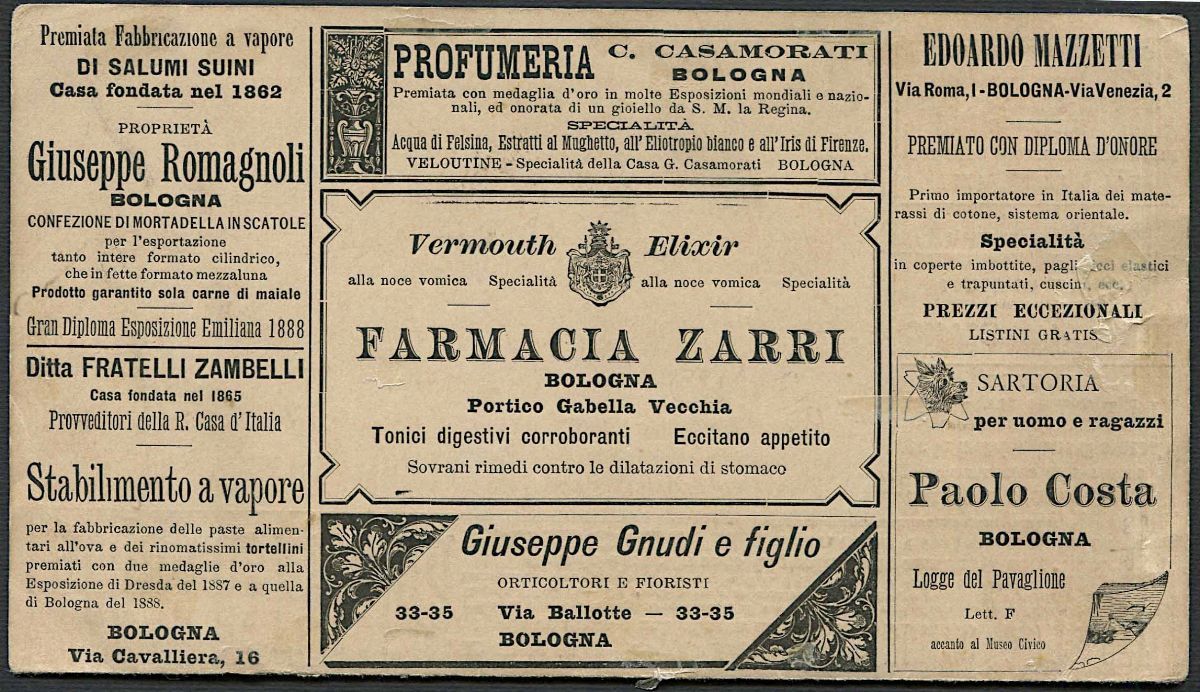1889, Regno d’Italia, cartolina di Pubblicità da 20 centesimi.
