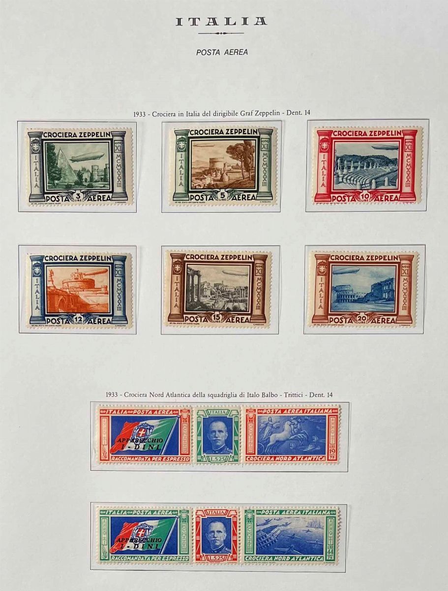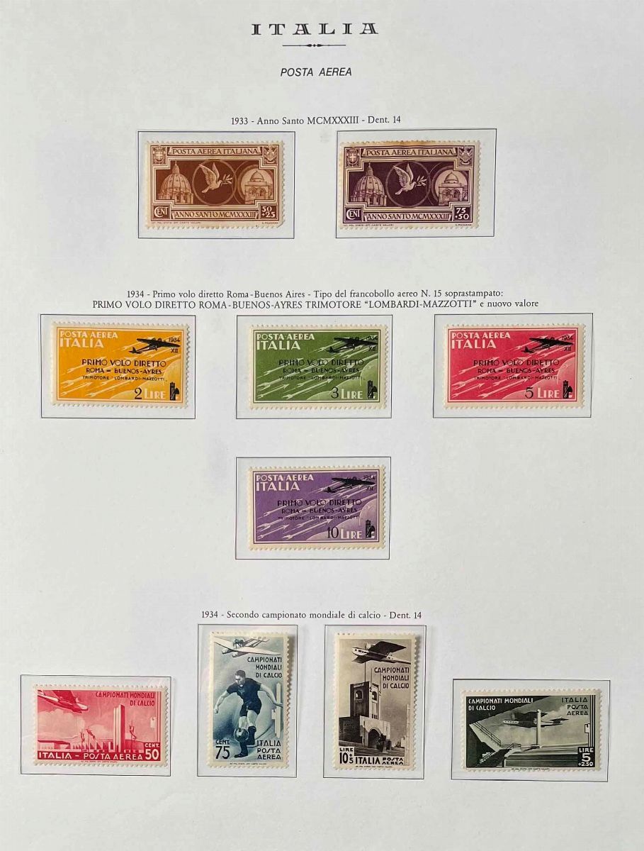 Con linguella o gomma integra, su album Marini. In più qualche valore di Colonie e altri blocchi o fogli. Merita attenta visione, alto valore di catalogo. Il “non emesso” Dante (S. 116A) con certificato Raybaudi.