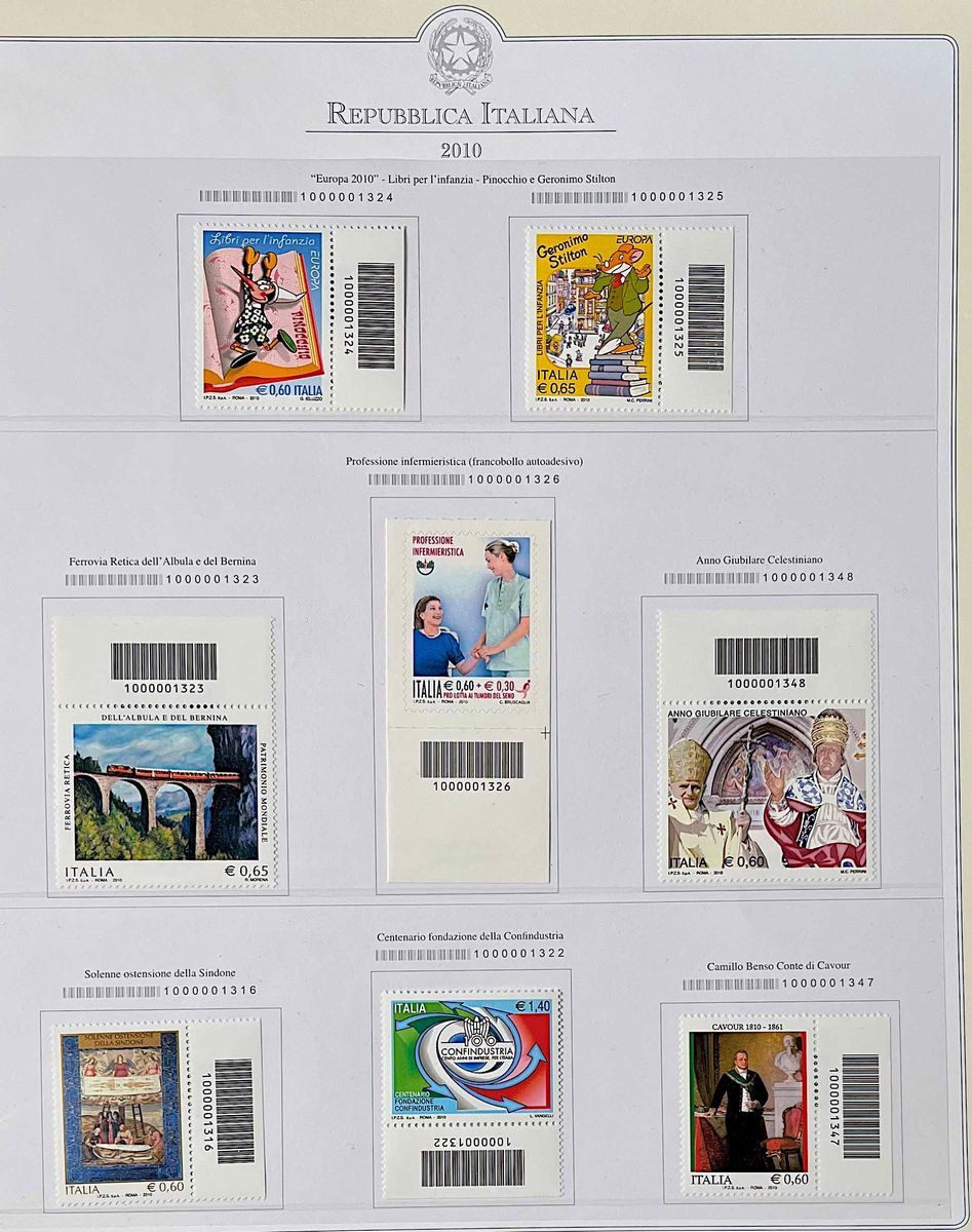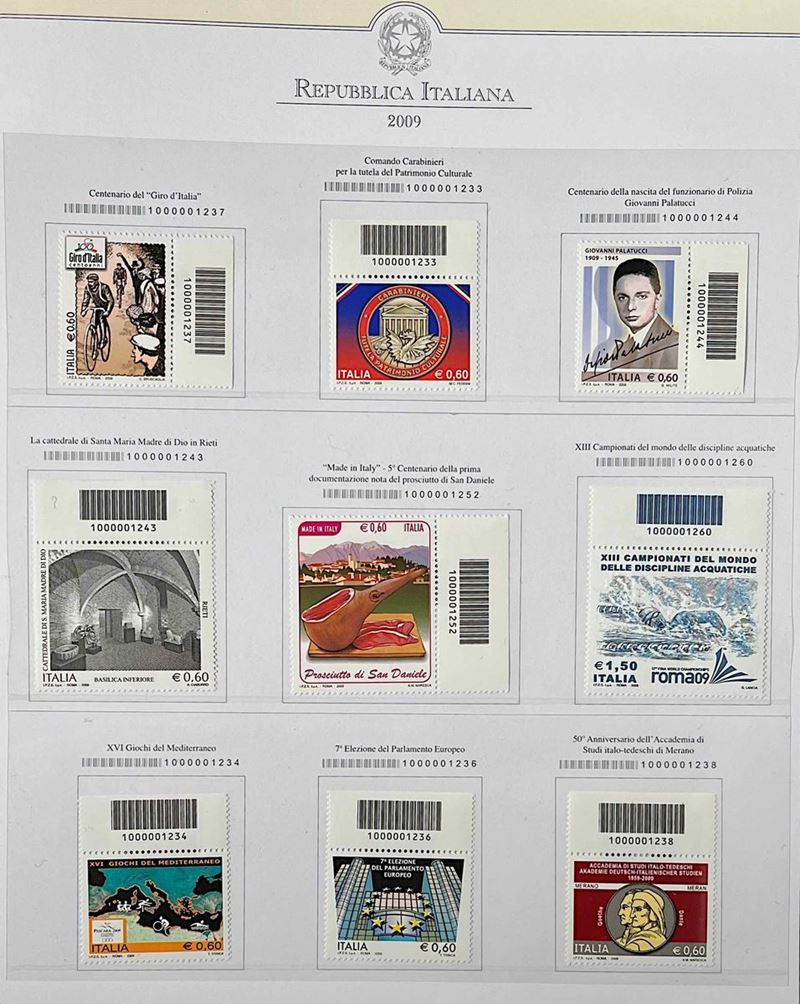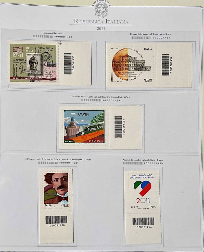 Collezione completa del periodo formata da francobolli con codici a barre singoli nuovi in due volumi Abafil e Marini. Molto bella.