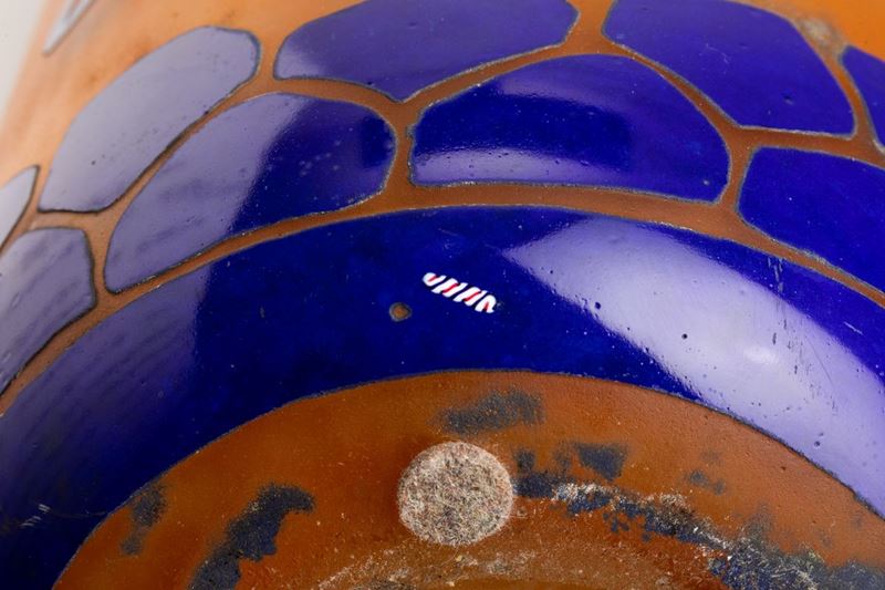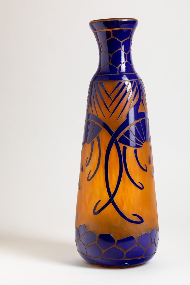 Vaso monumentale in vetro a cammeo con decoro floreale stilizzato.