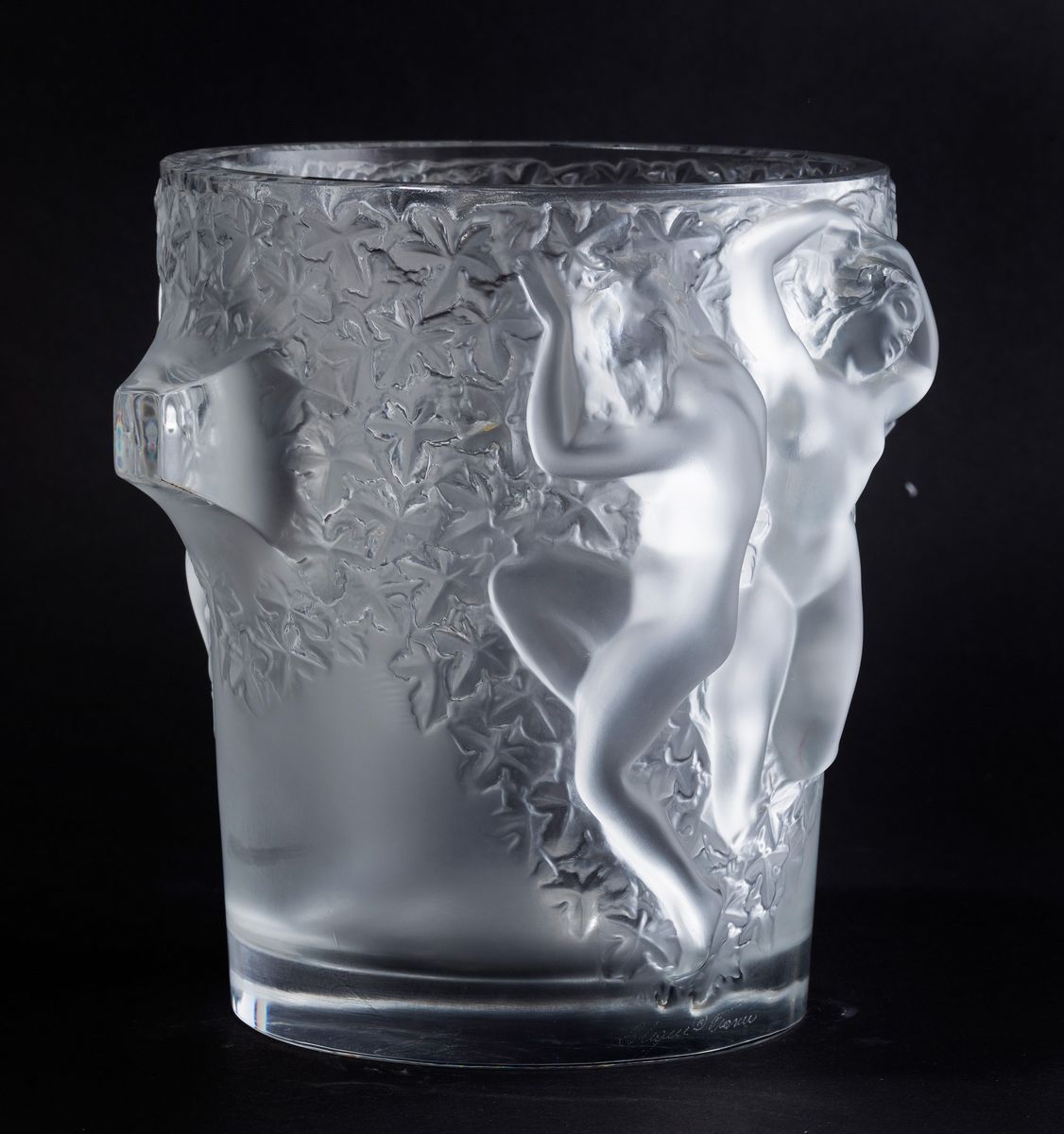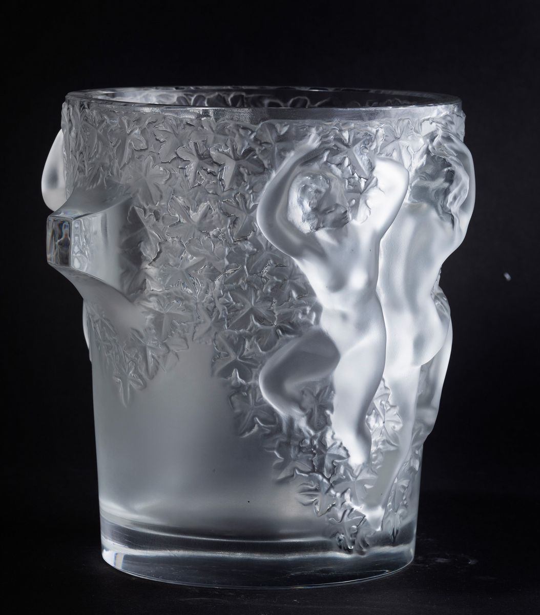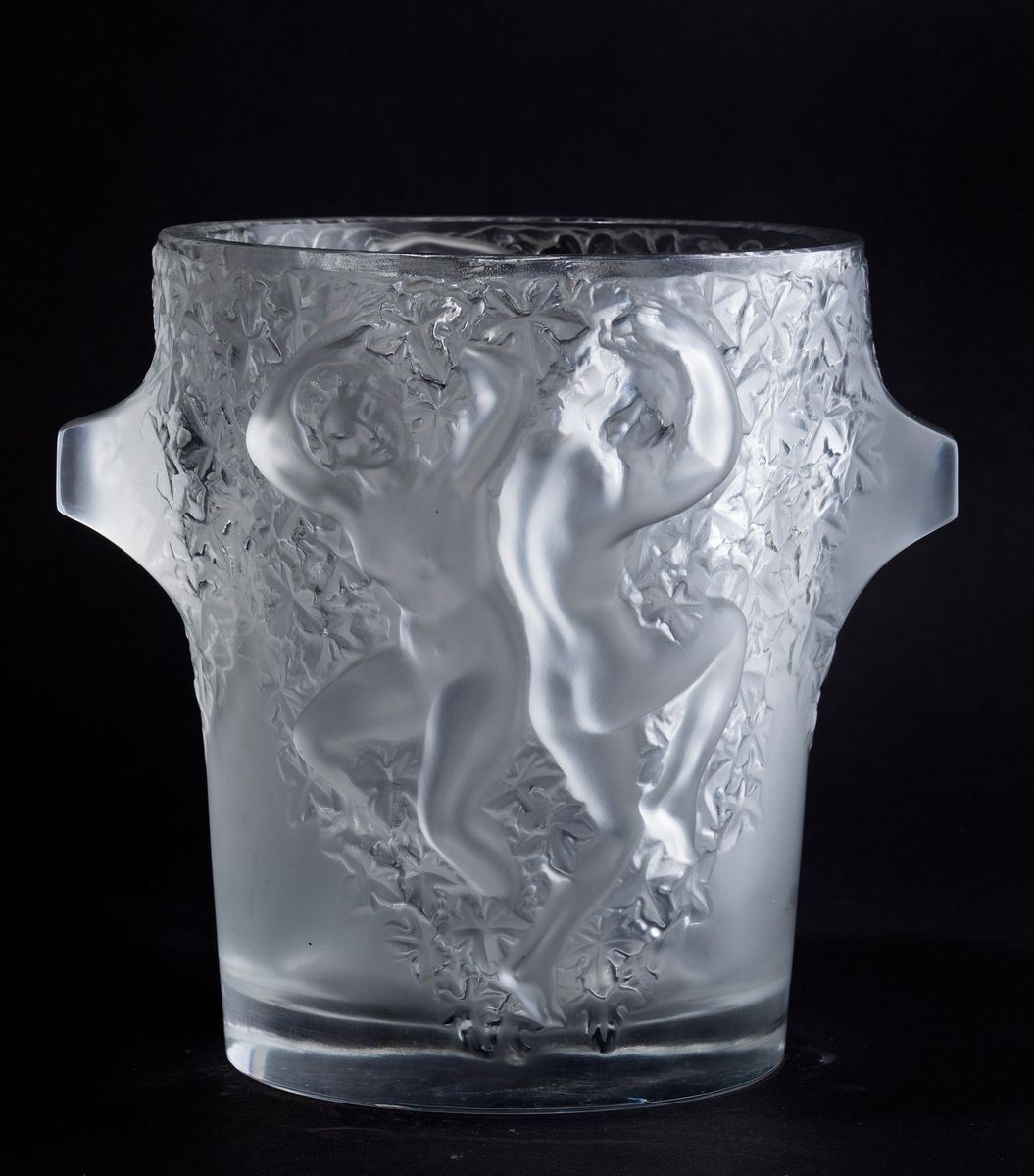 Secchiello del ghiaccio modello Ganymède in cristallo soffiato e lavorato alla mola con figure di danzatori a rilievo.