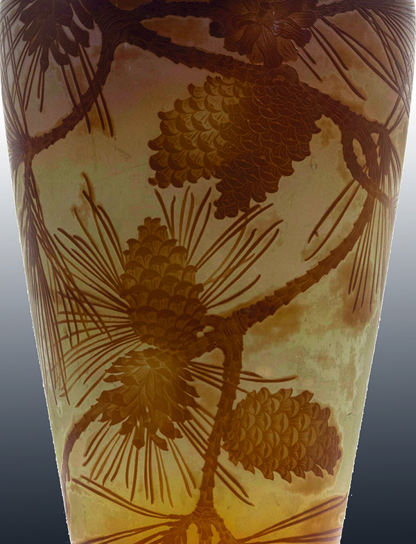 Vaso monumentale in vetro a cammeo con decoro floreale stilizzato. Firma con murrina incussa