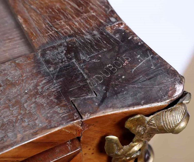 La commode manifesta le più peculiari caratteristiche dello "stile Dubois", stile affermatosi già nel corso della carriera dell’ebanista, uno dei più rinomati sotto il regno di Luigi XV.