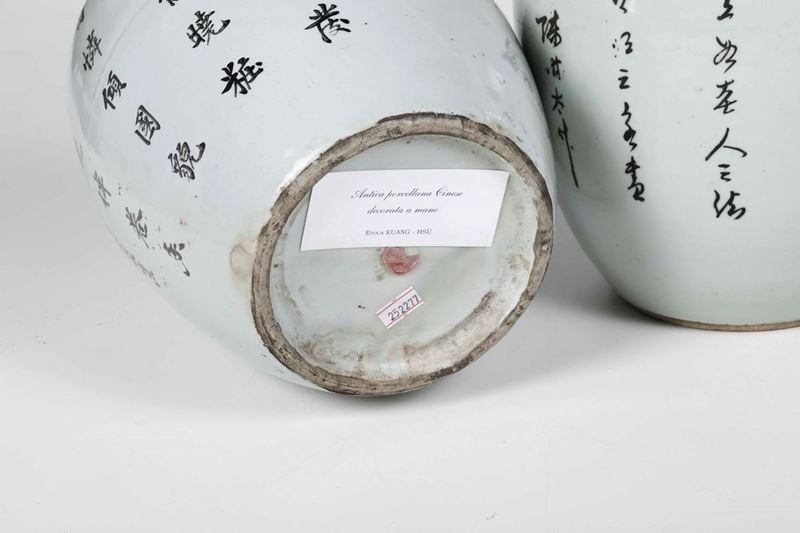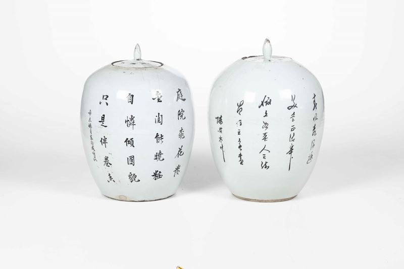 Due potiches globulari in porcellana con fanciulle, Cina, Dinastia Qing, XIX secolo