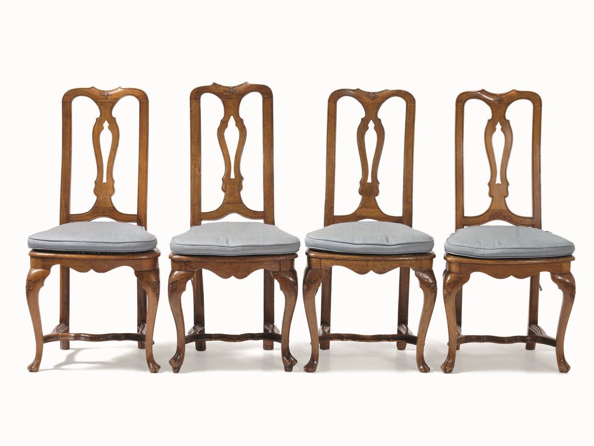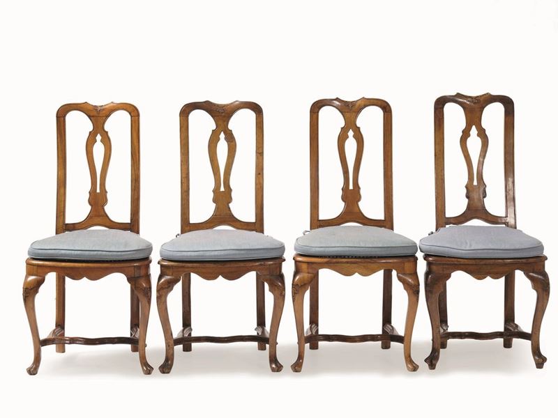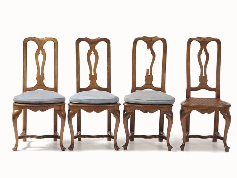 Insieme di sei sedie in noce. Veneto XVIII secolo