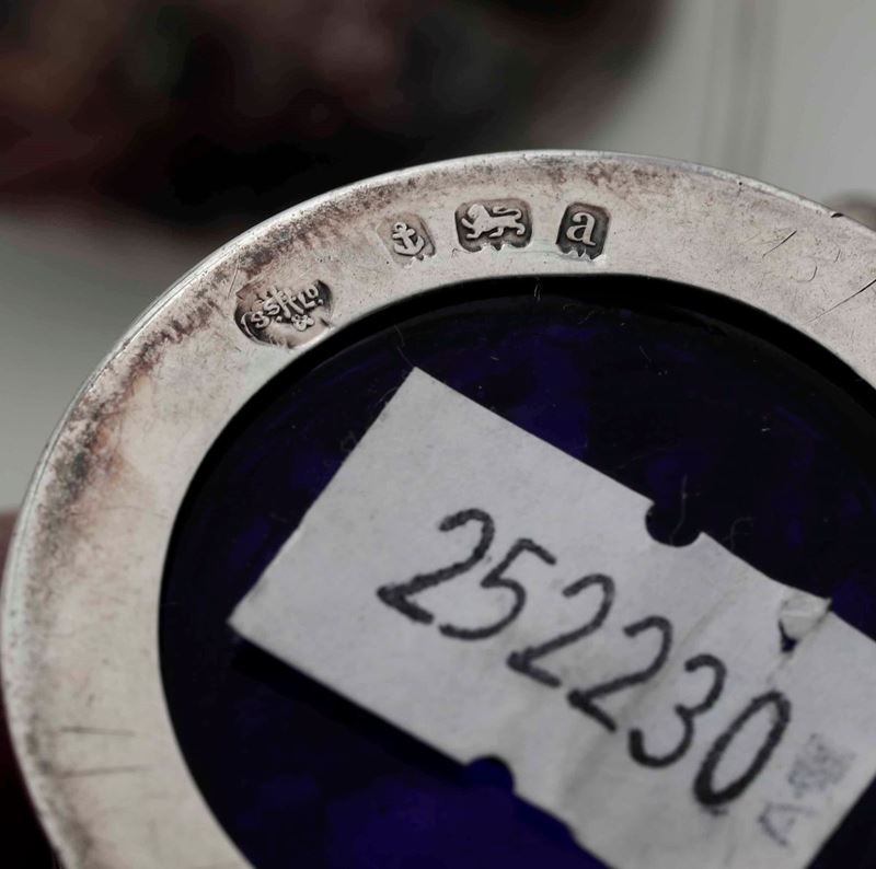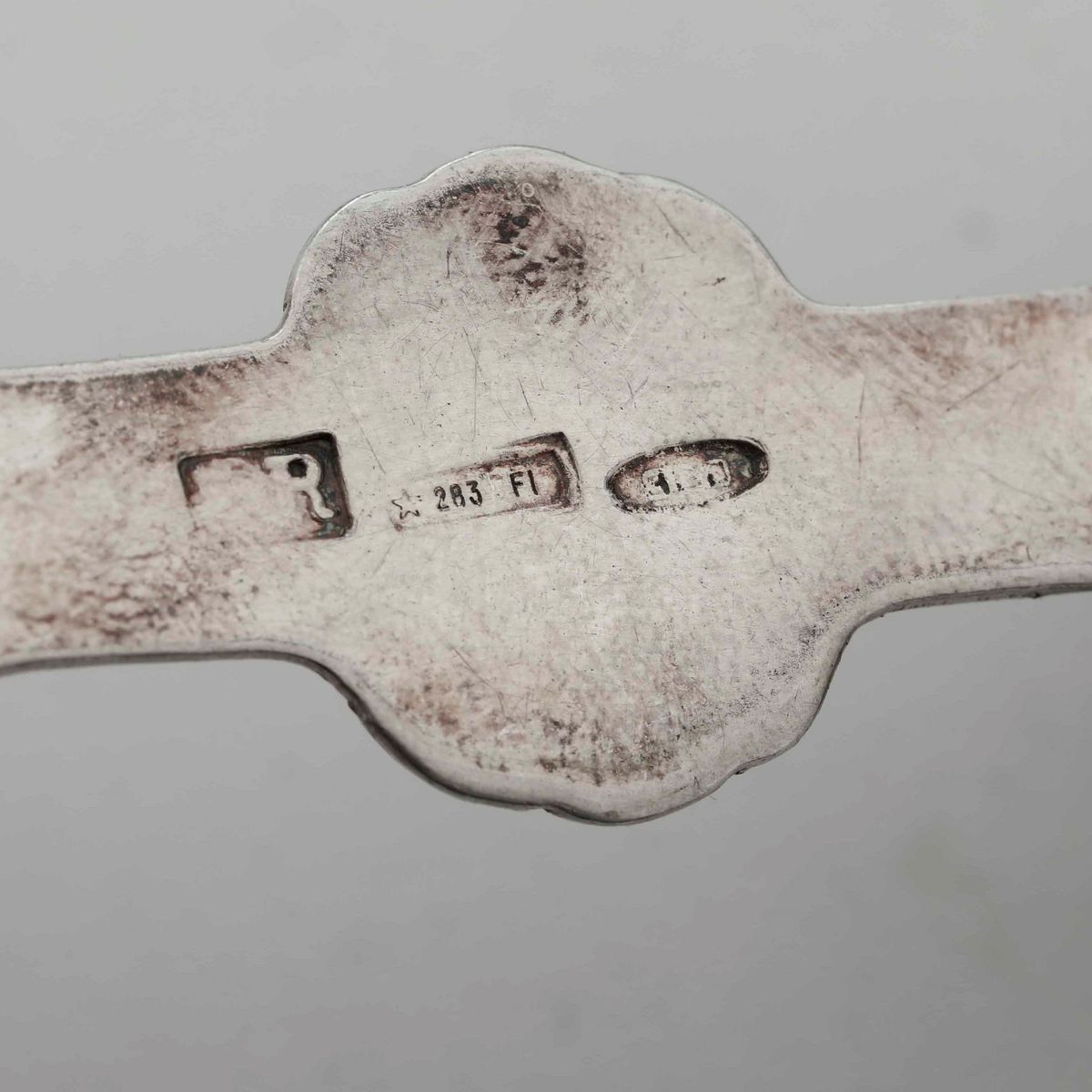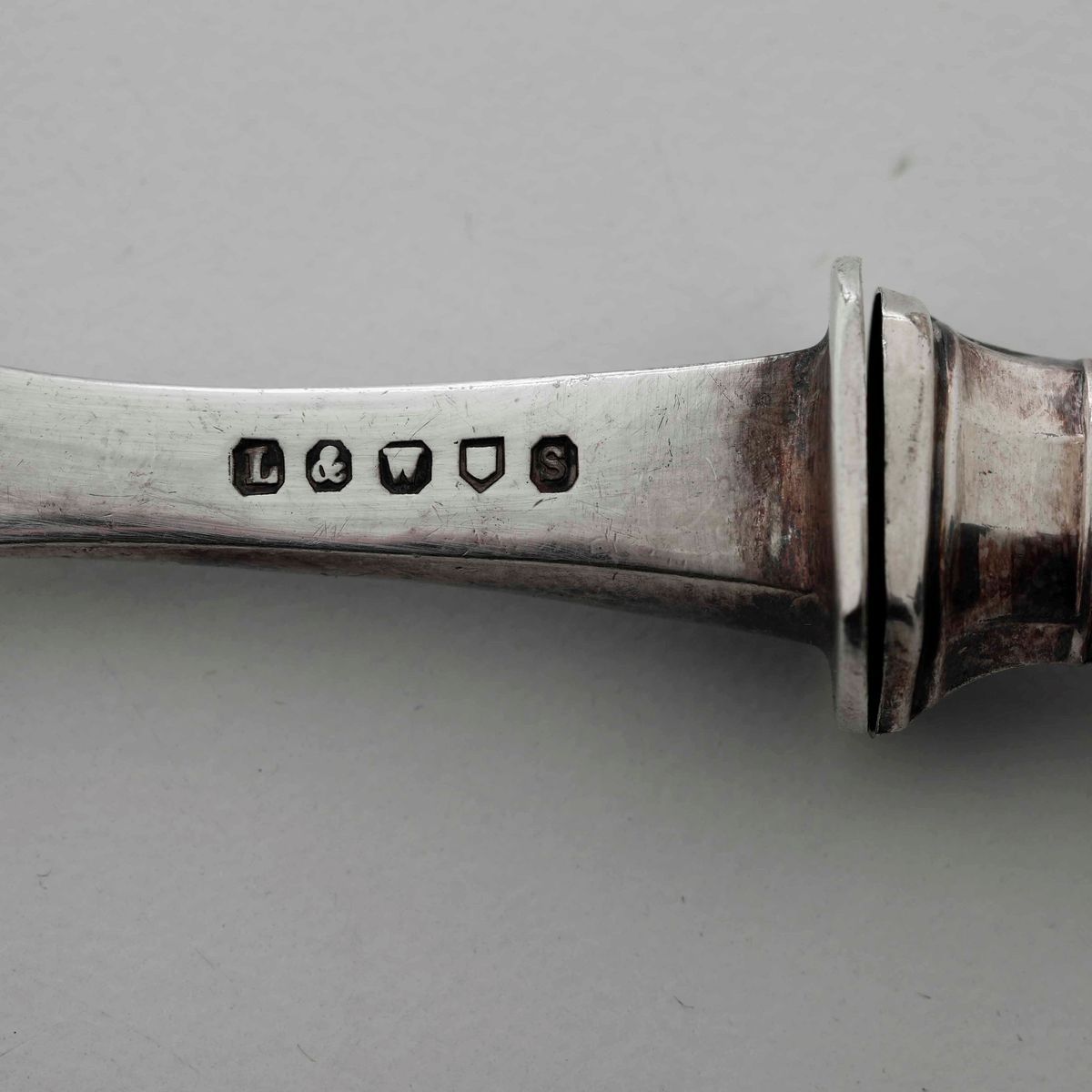 Lotto di due mostardiere in argento e tre posate. Inghilterra e Italia XX secolo
