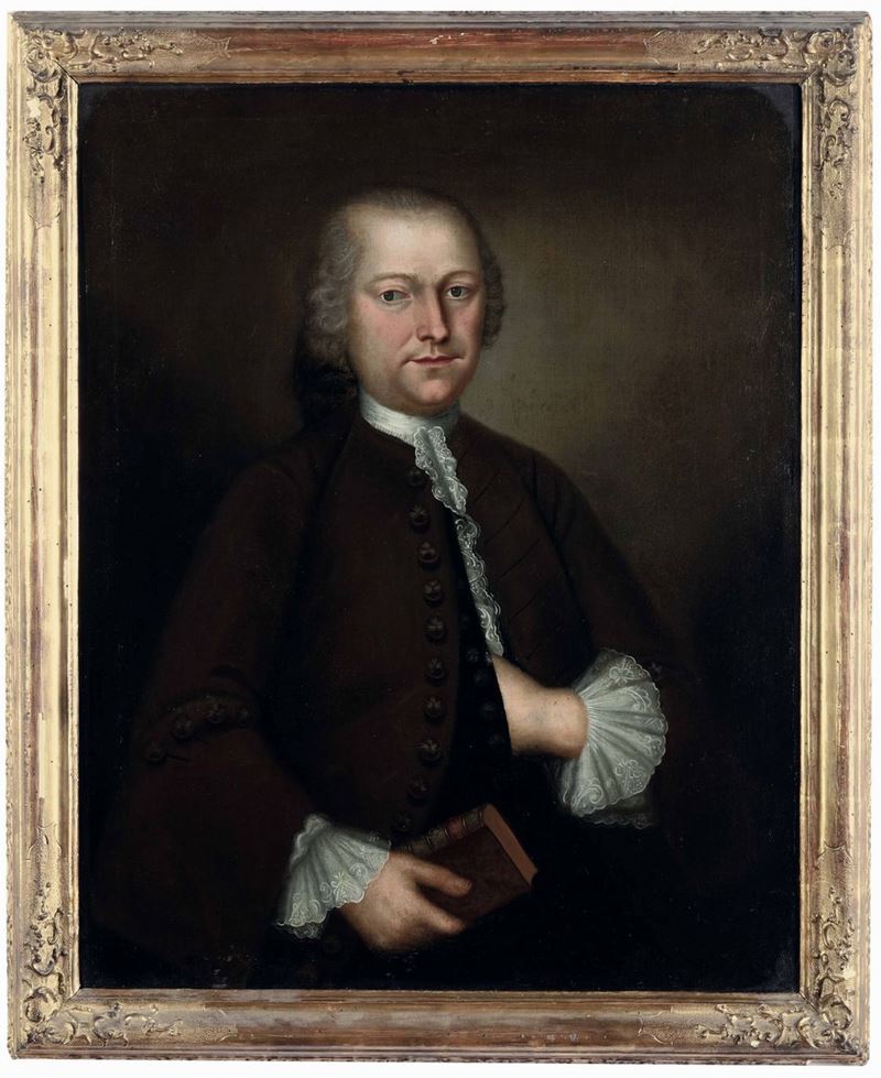 Scuola del XVIII secolo Ritratto di gentiluomo con libro