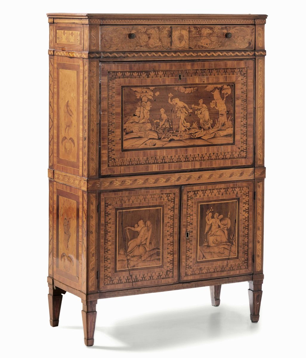 Secretaire lastronato, filettato e intarsiato. Fine XIX secolo
