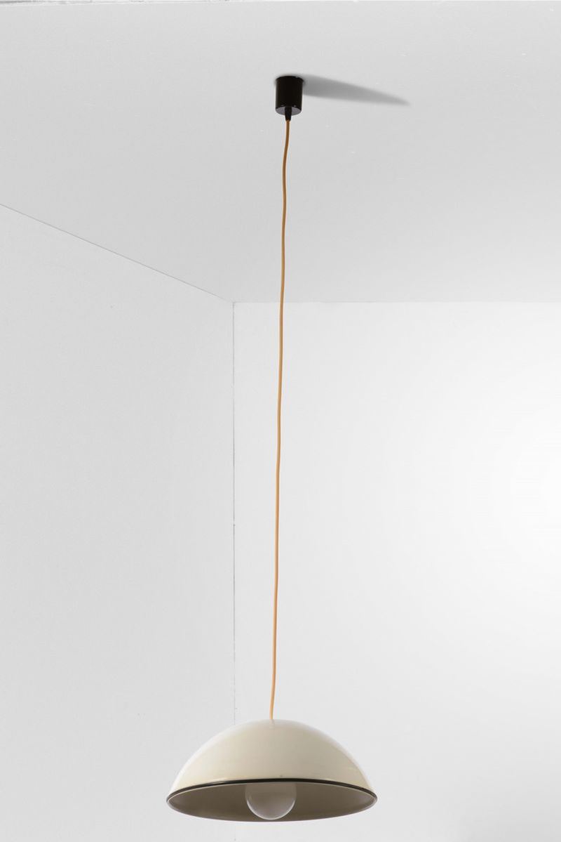 Due lampade a sospensione con struttura in metallo laccato.