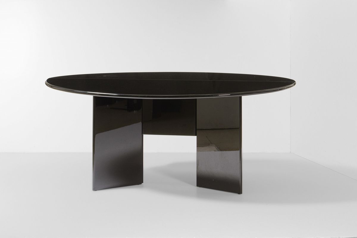Tavolo consolle pieghevole mod. Antella con struttura e piano in legno laccato.