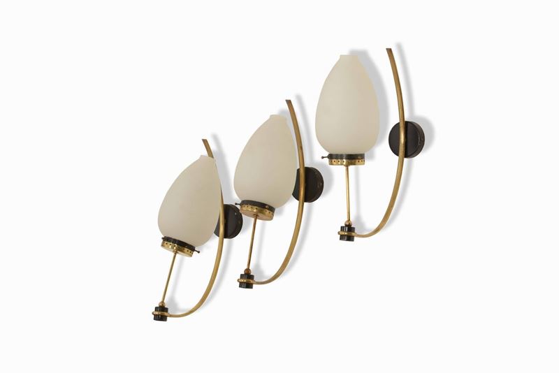Struttura in ottone e metallo laccato. Diffusore in vetro opalino.