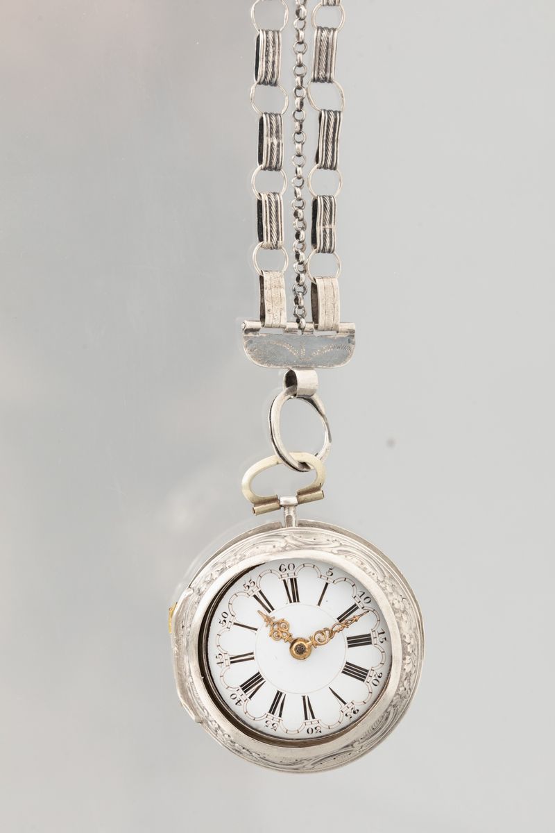 P. BUTT - Orologio da tasca Olandese per il mercato inglese con doppia cassa in argento sbalzato con chantlain. Vetro ass [..]