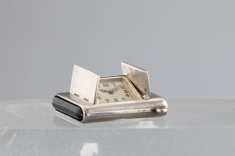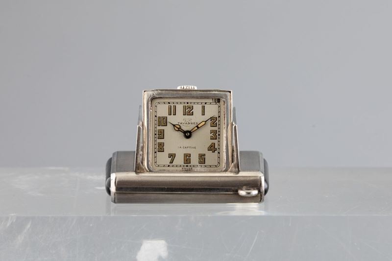 TAVANNES - La Captive orologio da viaggio a carica manuale in argento 925 con numeri arabi e lancette luminose