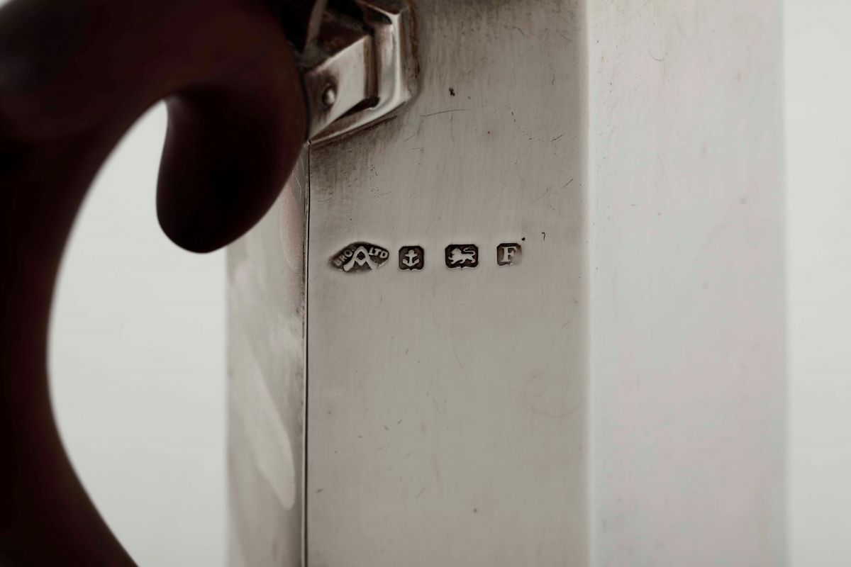 Caffettiera e lattiera in argento fuso e sbalzato. Città di Birmingham 1930. Marchio dell'argentiere (non identificato)