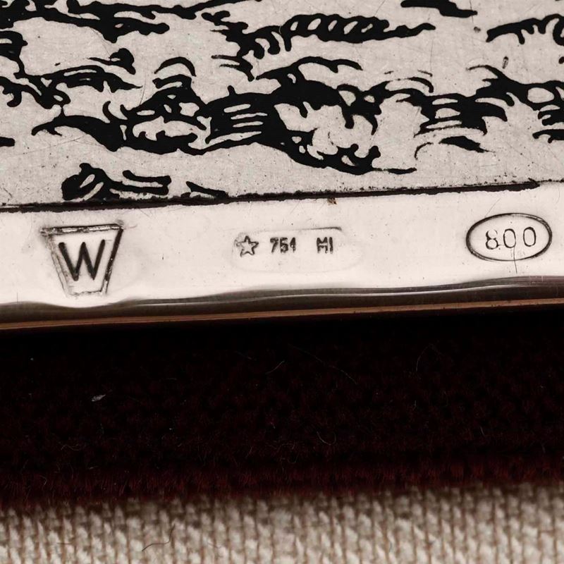 una scatola in argento Firenze XX secolo, un incisione su argento con campanile Milano XX secolo