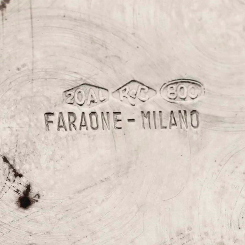 Lotto composto da tre piattini piccoli, piatto tondo e piatto sagomato in argento. Varie manifatture italiane del XX secolo