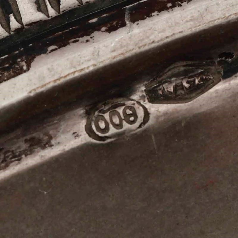 Lotto composto da tre piattini piccoli, piatto tondo e piatto sagomato in argento. Varie manifatture italiane del XX seco [..]