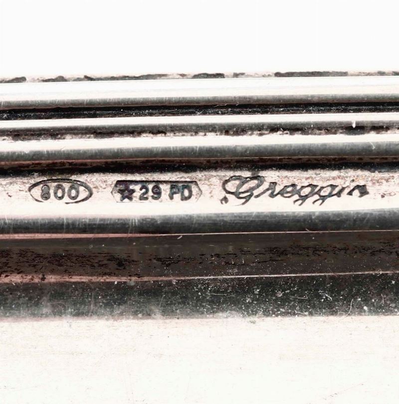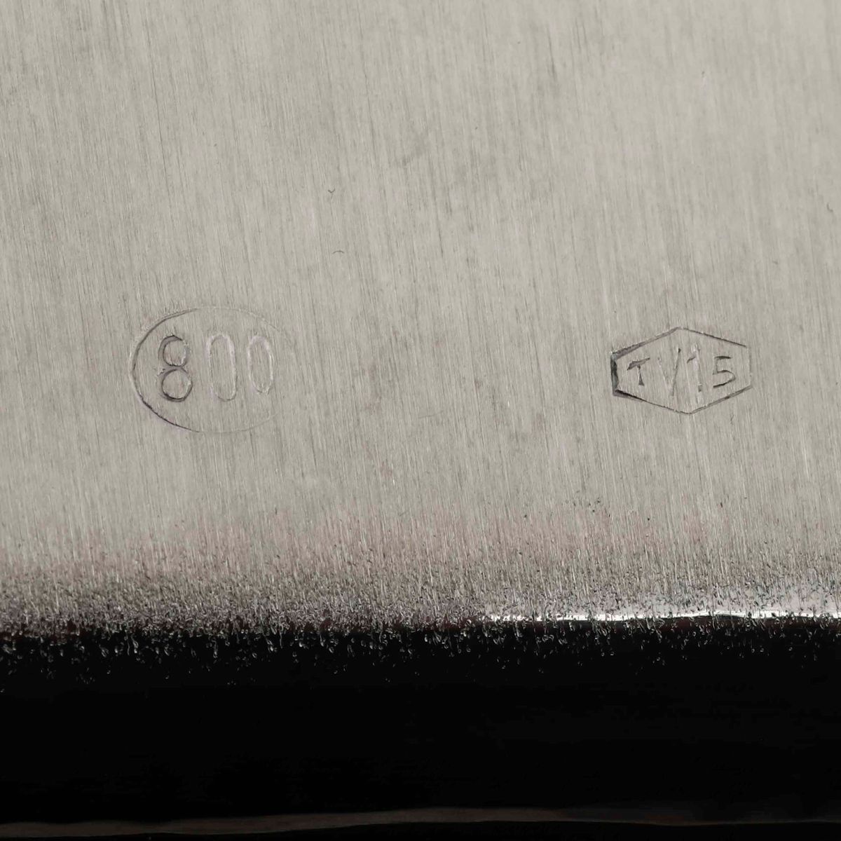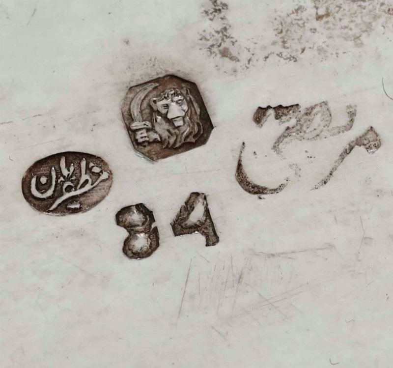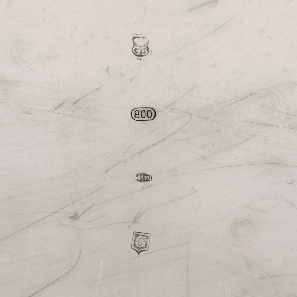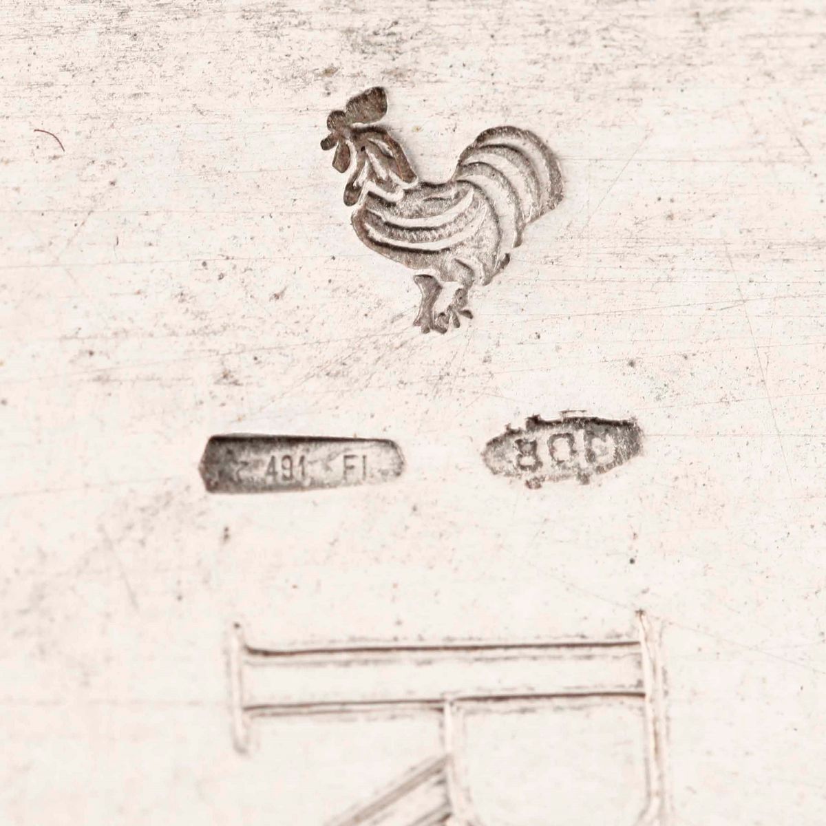 composto da: Piatti di portata argento: 1 x tondo diametro 35 cm 1 x ovale lunghezza 45 cm 1 x ovale lunghezza 70 cm 6 x scodelline per lavare frutta argento 4 x piattini porta pane o sottobottiglie rotondi 2 x sotto bottiglie (piu' profondi) argento tondi 1 x cestino ovale argento 1 x vassoietto rettangolare argento 1 x scatola sigarette ricamata argent 1 x scatola sigarette con monetina San Marino 1938 1 x alzatina ricamata