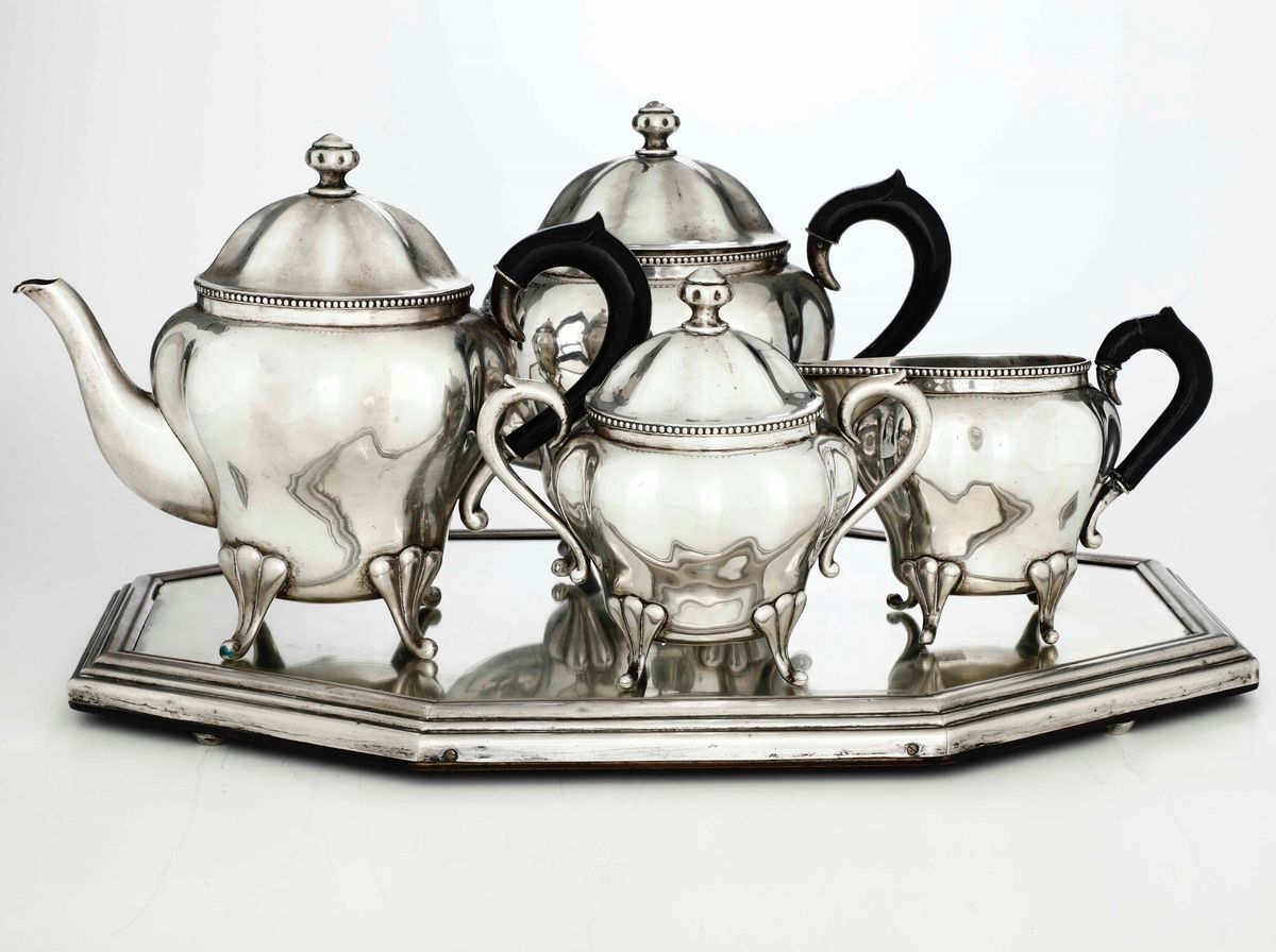 Servizio da tè e caffè in argento. Argenteria italiana del XX secolo