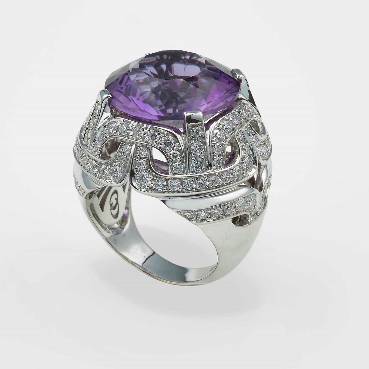 Modello Afrodite. Anello con ametista e diamanti per ct 2.26