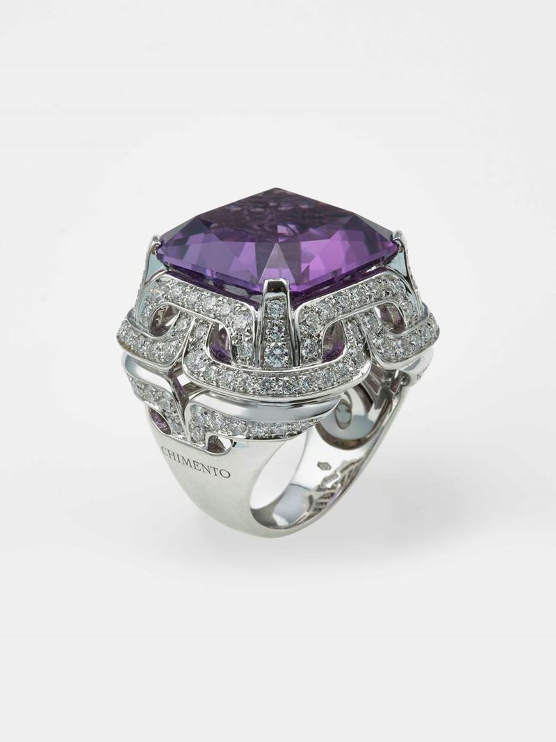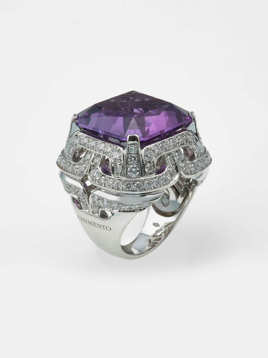 Modello Afrodite. Anello con ametista e diamanti per ct 3.00