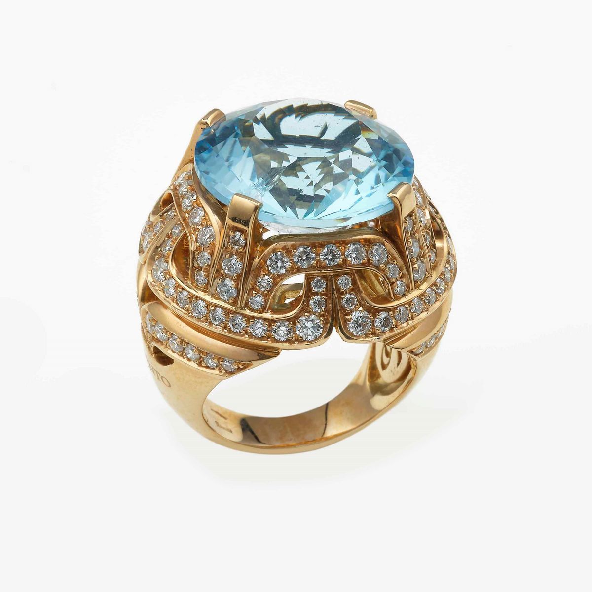Modello Afrodite. Anello con topazio azzurro e diamanti per ct 1.86