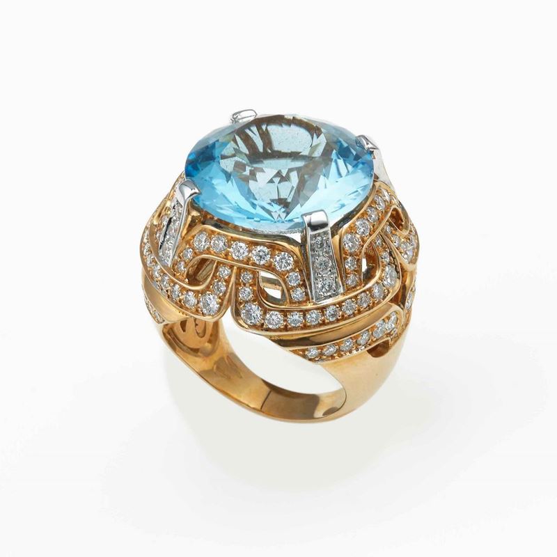 Modello Afrodite. Anello con topazio azzurro e diamanti per ct 2.56