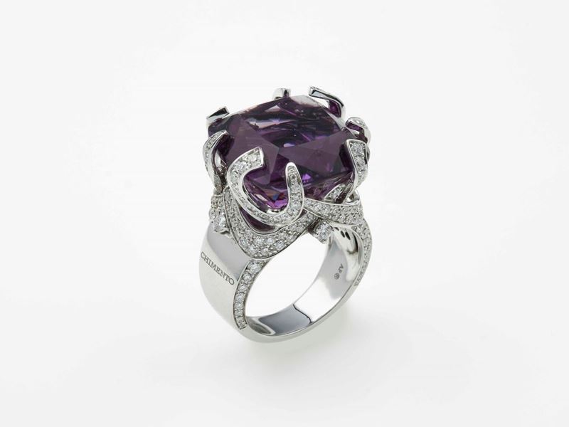 Modello Imperial. Anello con ametista e diamanti per ct 1.98
