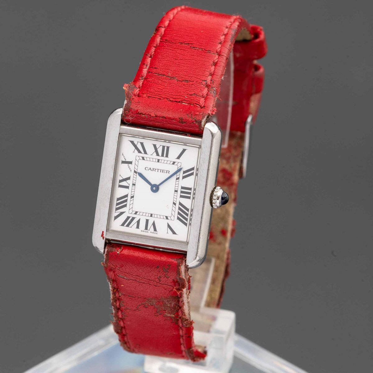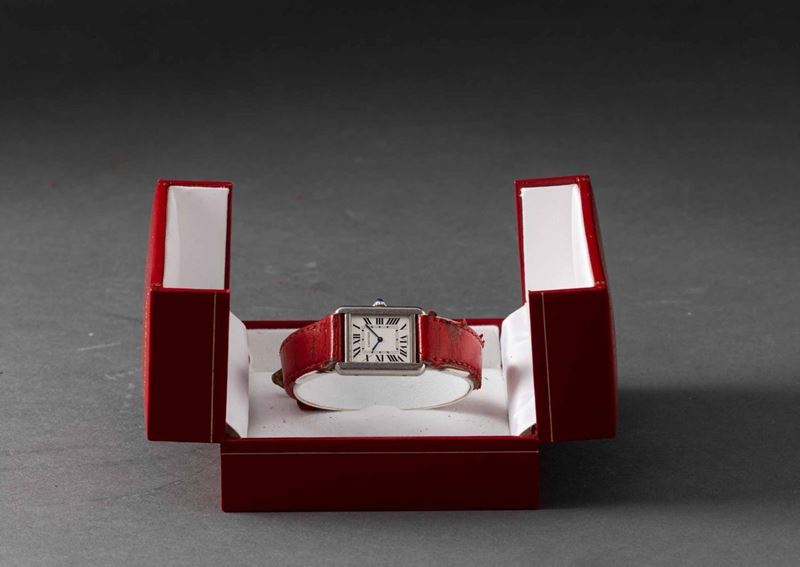 CARTIER - Tank Solo in acciaio al quarzo con quadrante bianco numeri Romani con astuccio e garanzia