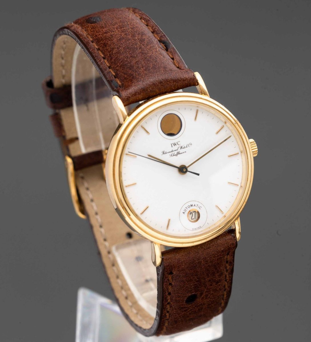 IWC - Portofino ref 3512 in oro giallo 18k automatico con datario e fasi lunari, quadrante bianco con indici a bastone