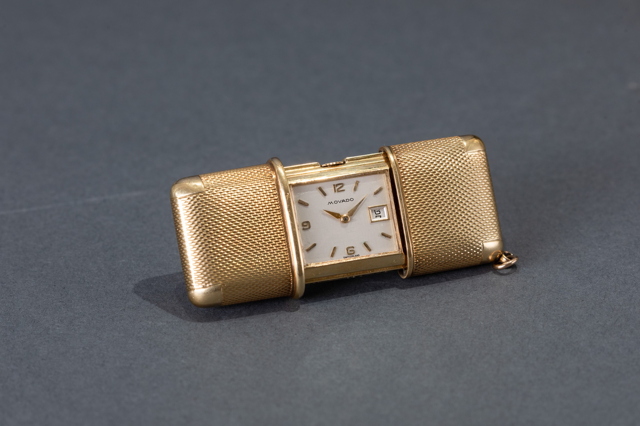 MOVADO - Ermeto in oro giallo 18k con datario quadrante Argentè indici applicati