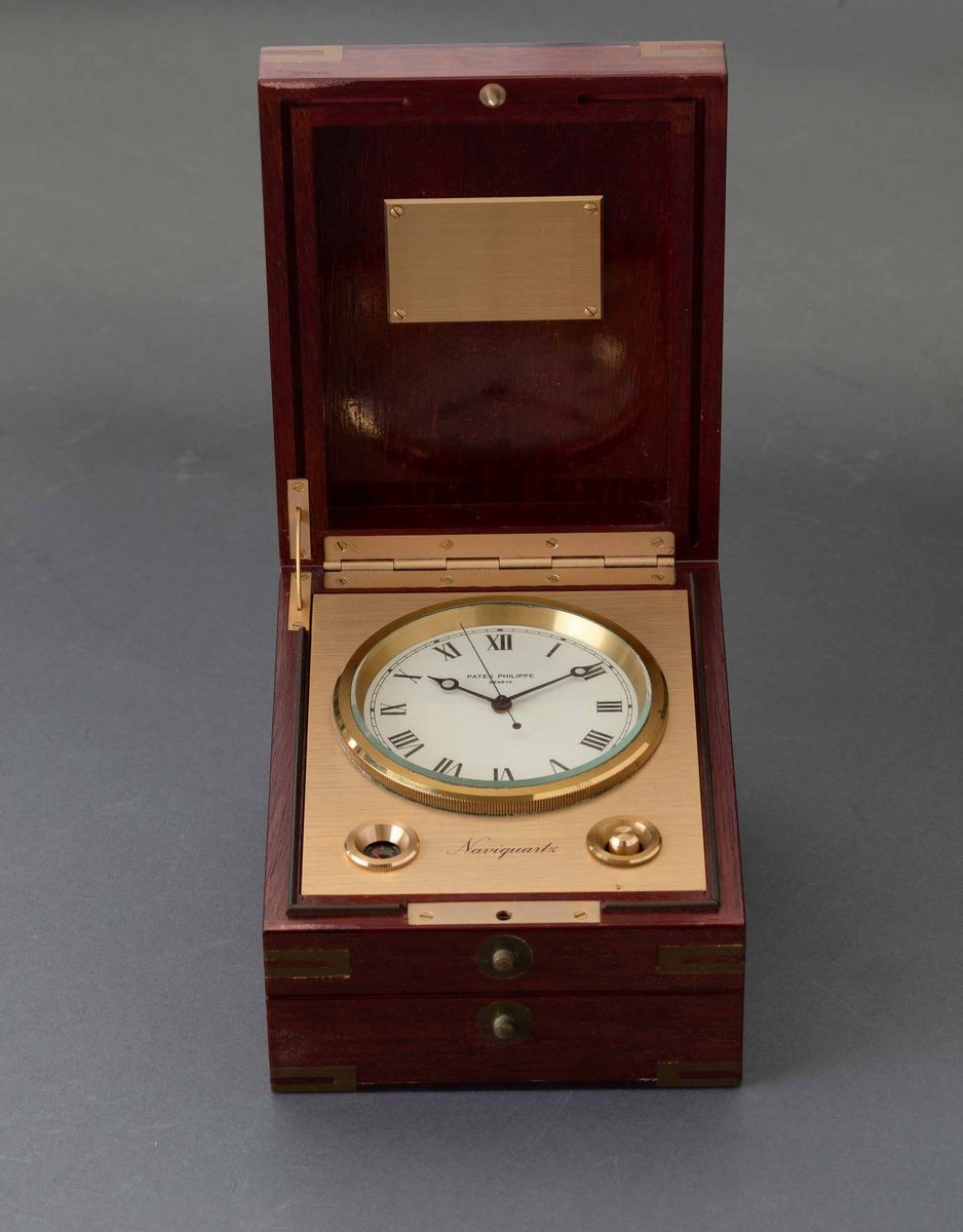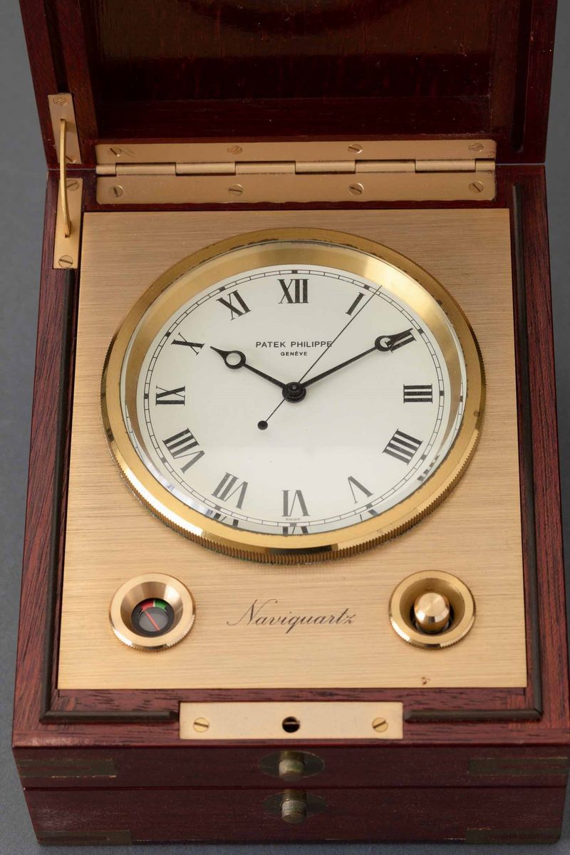 PATEK PHILIPPE - Naviquartz, Ref. 1215. Cronometro da marina in legno e ottone dorato con indicazione di durata della batteria.