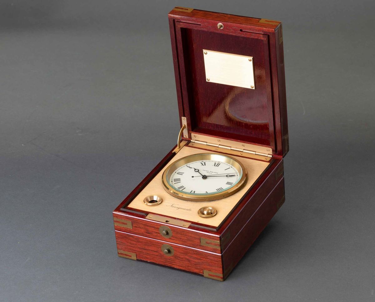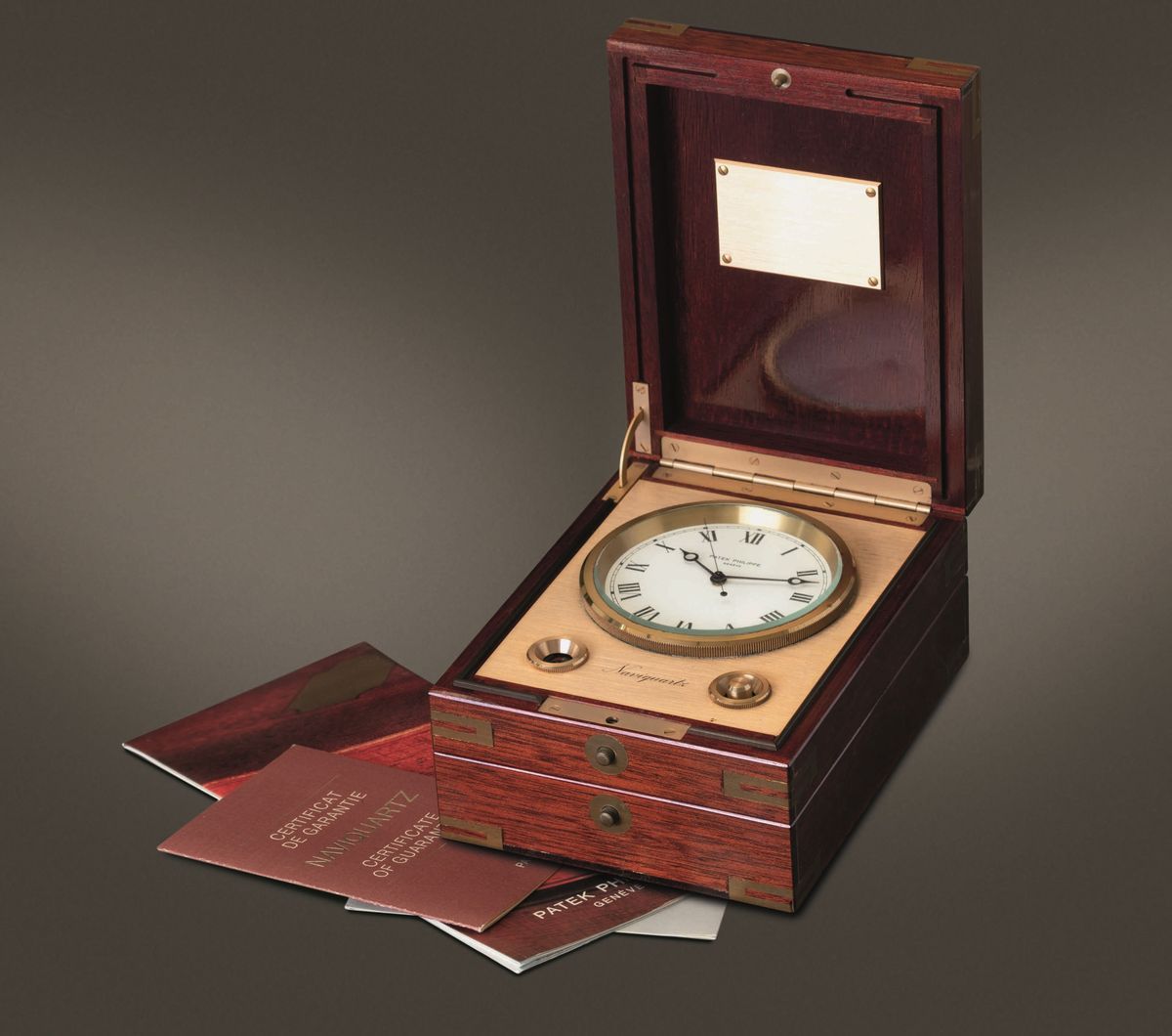 PATEK PHILIPPE - Naviquartz, Ref. 1215. Cronometro da marina in legno e ottone dorato con indicazione di durata della bat [..]