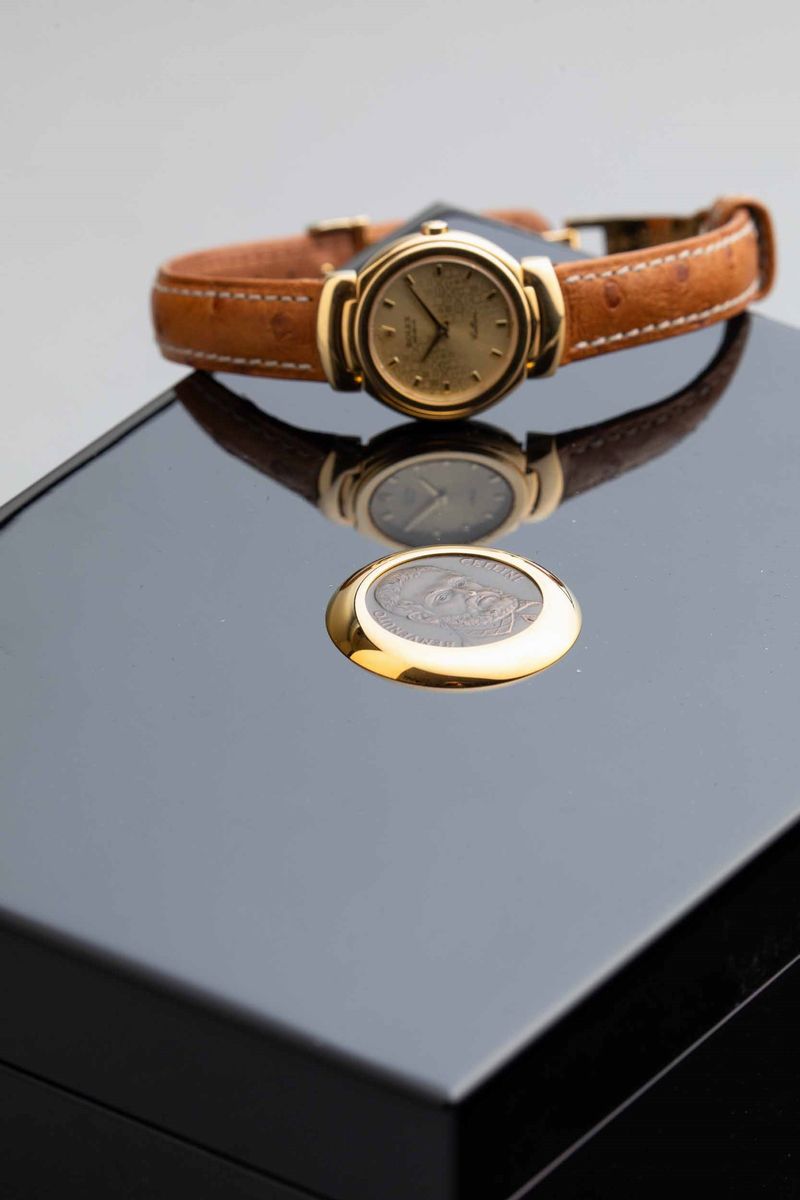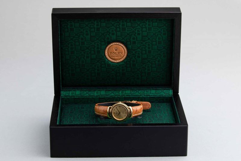 ROLEX - Cellini lady ref 6621, in oro 18k con anse mobili movimento al quarzo, quadrante "Computer" e deployante. Orologio [..]