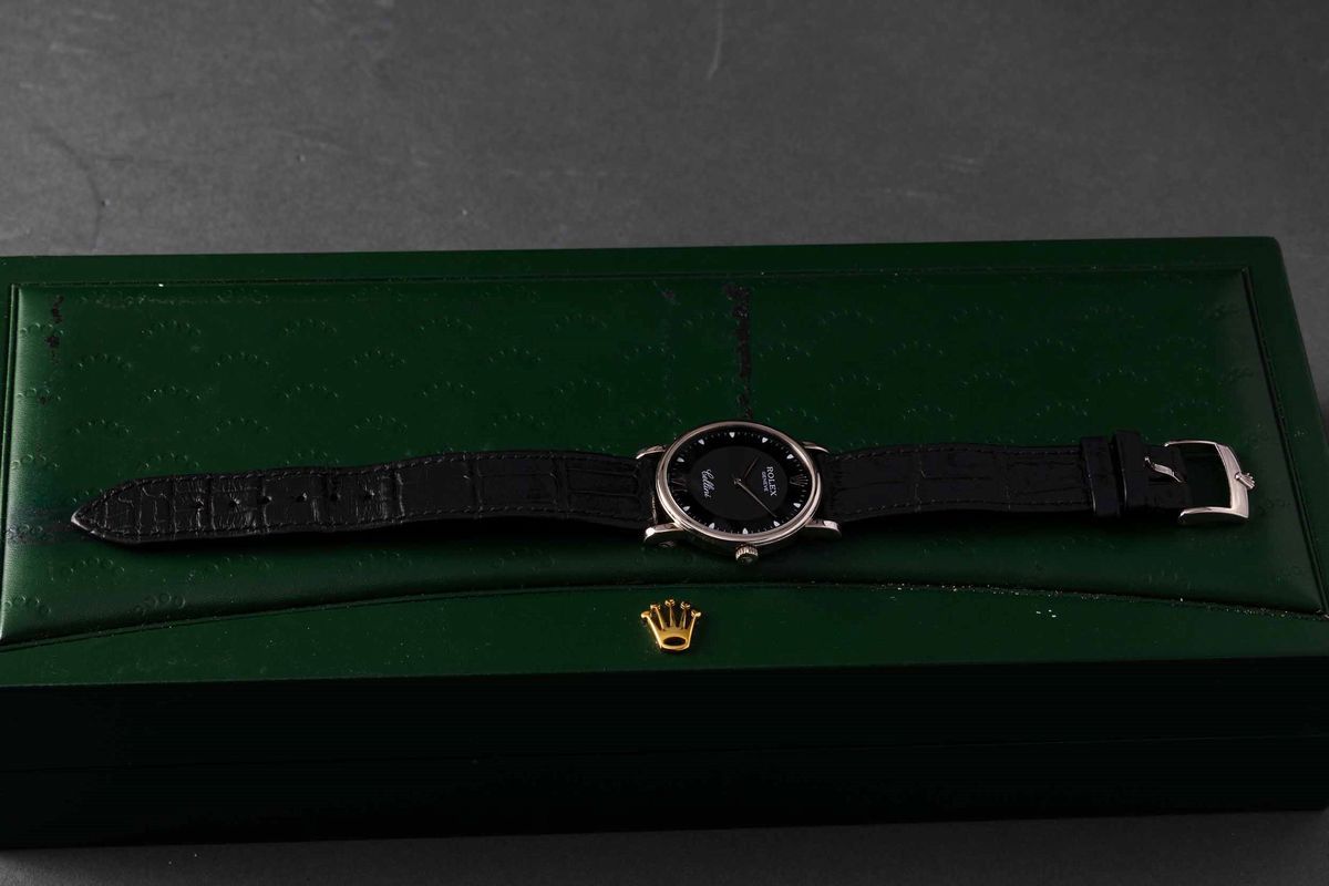 ROLEX - Cellini ref 5115/9 in oro bianco carica manuale con quadrante nero bitonale completo di scatola e garanzia