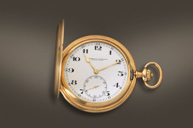 VACHERON & CONSTANTIN - Orologio da tasca in oro 18 k, cassa savonette, manca il vetro e si sgancia fermavetro, 1920 circa, [..]