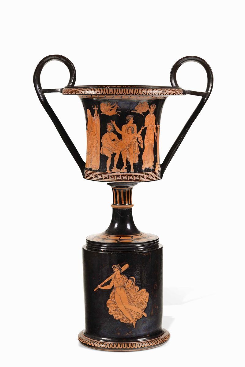 Grande coppa biansata "kántharos" su base a colonna. Napoli, seconda metà del XIX secolo