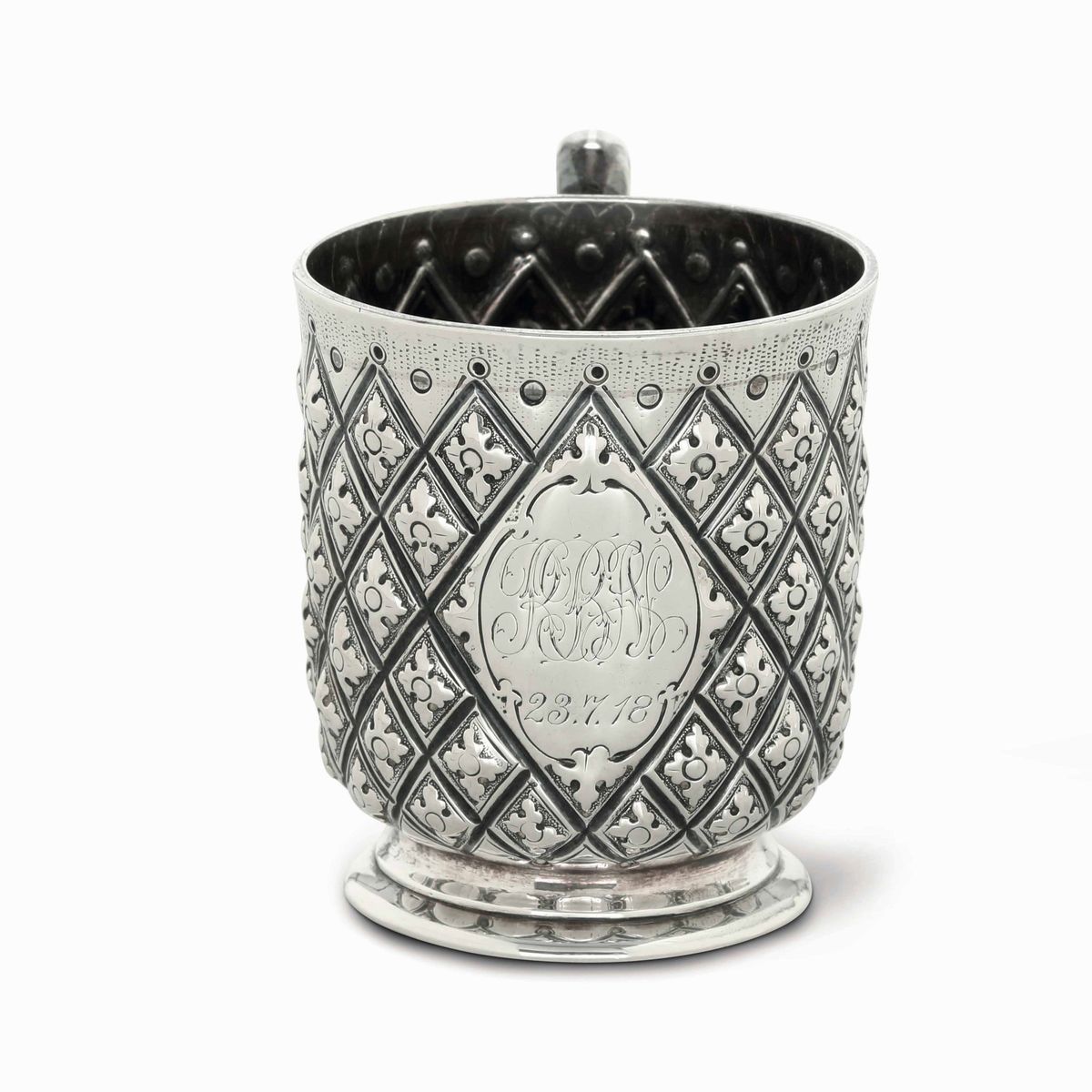 Boccale. Argento fuso, sbalzato e cesellato. Londra 1866, argentiere E.I.B (non identificato)