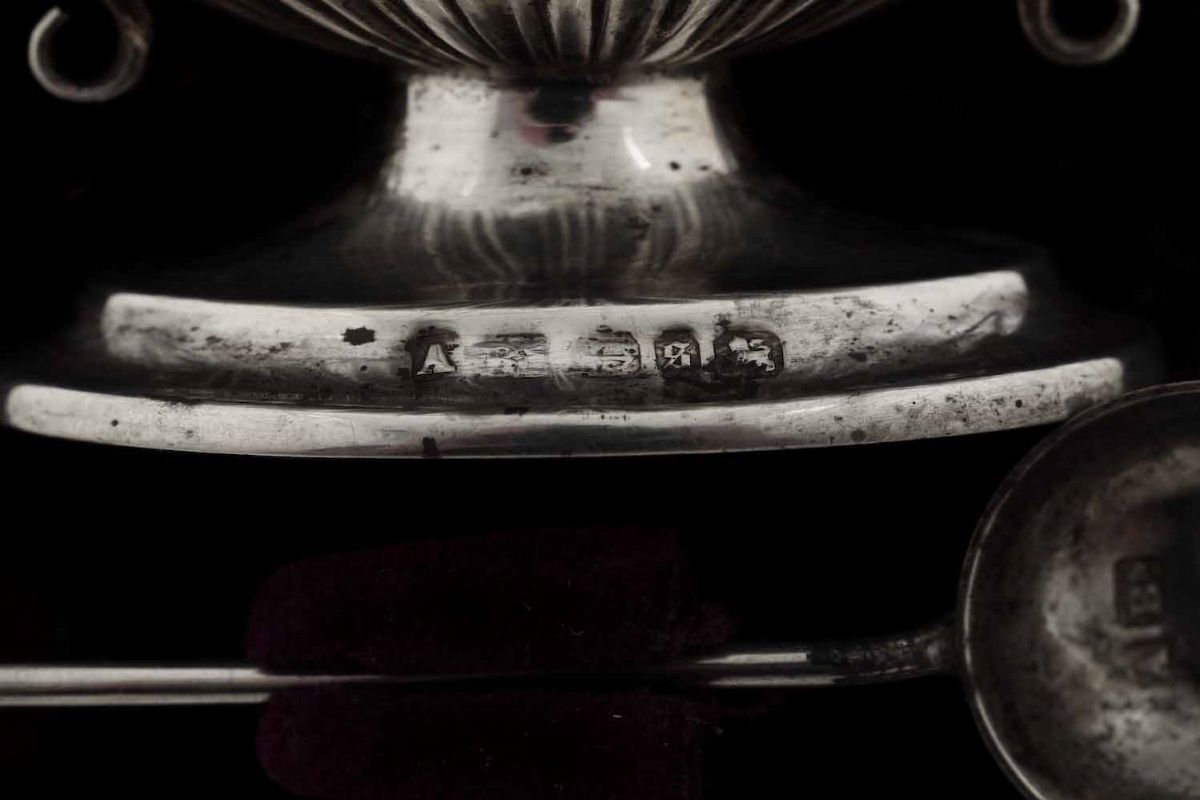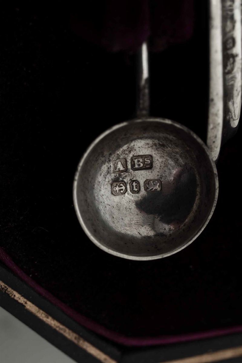 Coppia di salierine. Argento fuso, sbalzato e cesellato. Birmingham 1892 e 1893. Argentiere non identificato