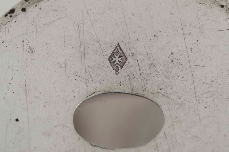 Mostardiera. Argento fuso, sagomato e cesellato. Piemonte o Francia XIX secolo