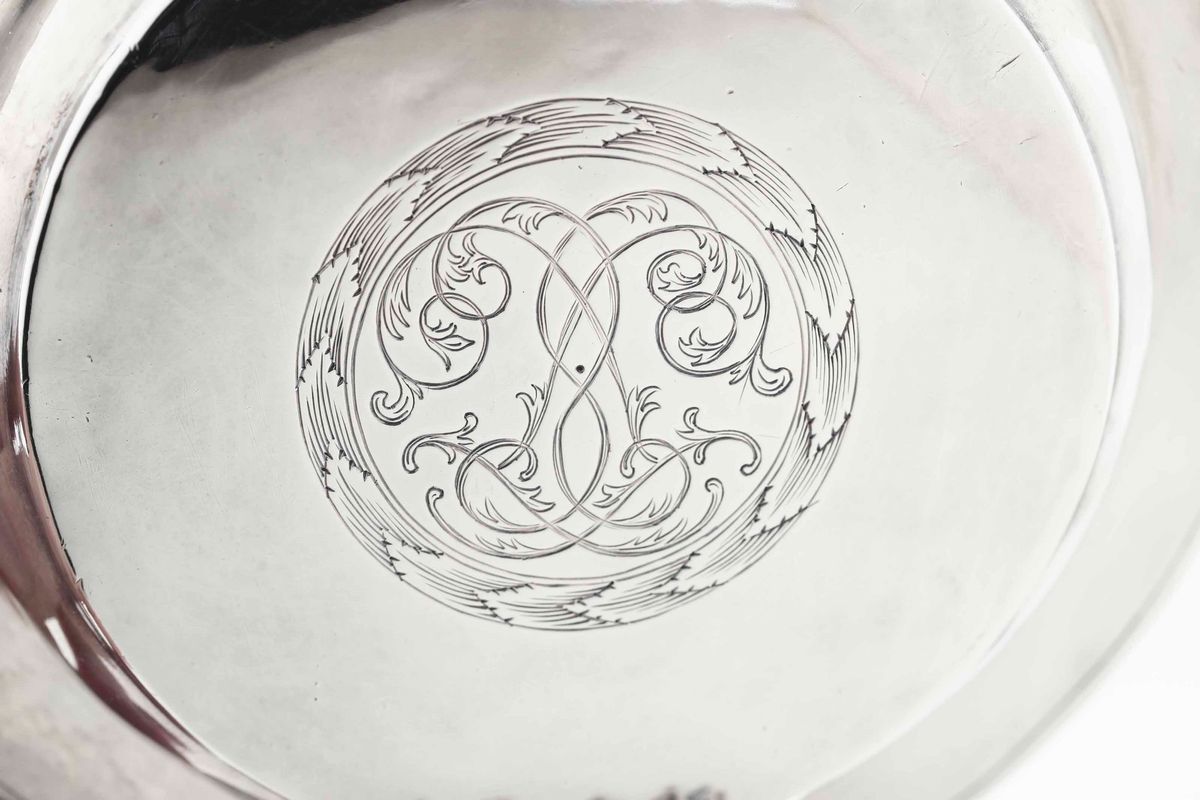 corpo liscio, coperchio centrato da incisione con monogramma