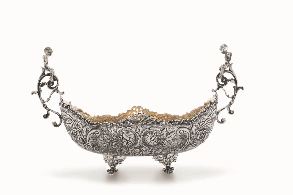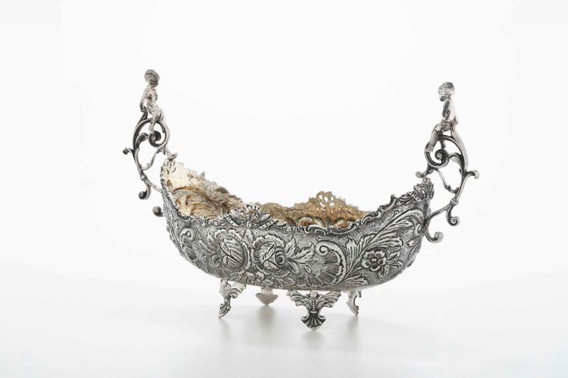 Centrotavola. Argento 900 fuso, sagomato, dorato e cesellato. Manifattura del XX secolo. Italia (?)