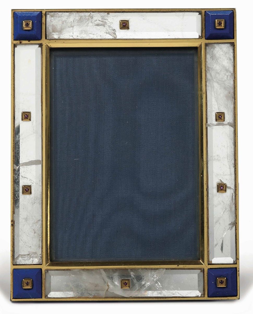Cornice. Bronzo, cristallo di Rocca, lapislazzulo e ametista. Manifattura italiana del XX secolo